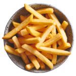 - Fry for 3-4 minutes or until the fries are golden brown and crispy.